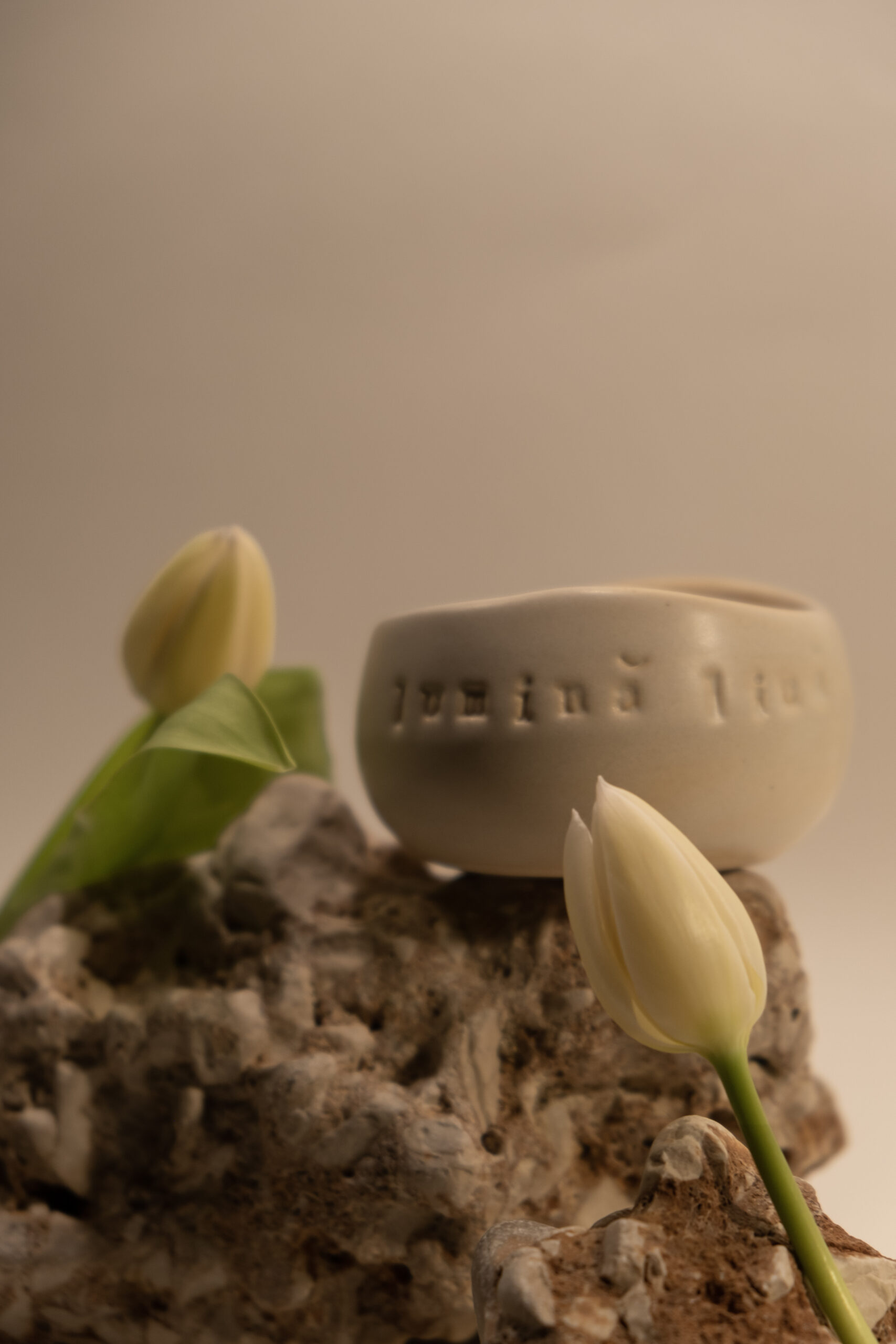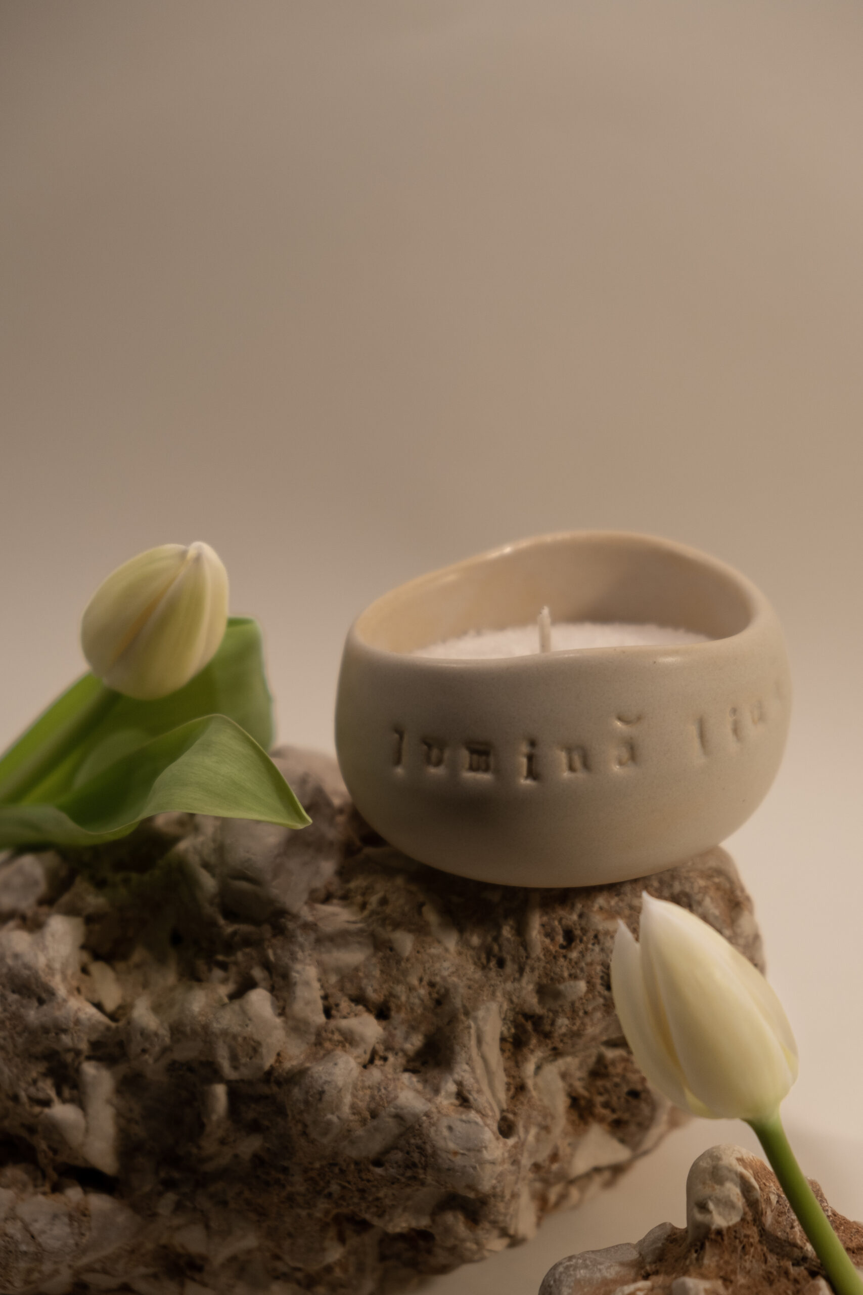 Am gândit acest set astfel încât obiectele să fie funcționale și versatile, nu doar decorative. Ceașca nu este doar un recipient pentru lumânare, ci un obiect de zi cu zi care poate avea mai multe întrebuințări.